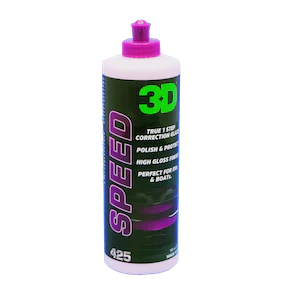 3D Speed™ Formula combinada que permite pulir y encerar en un paso. Remueve marcas moderadas y ligeras, restaura el color de la pintura y brinda un brillo intenso y protegido.