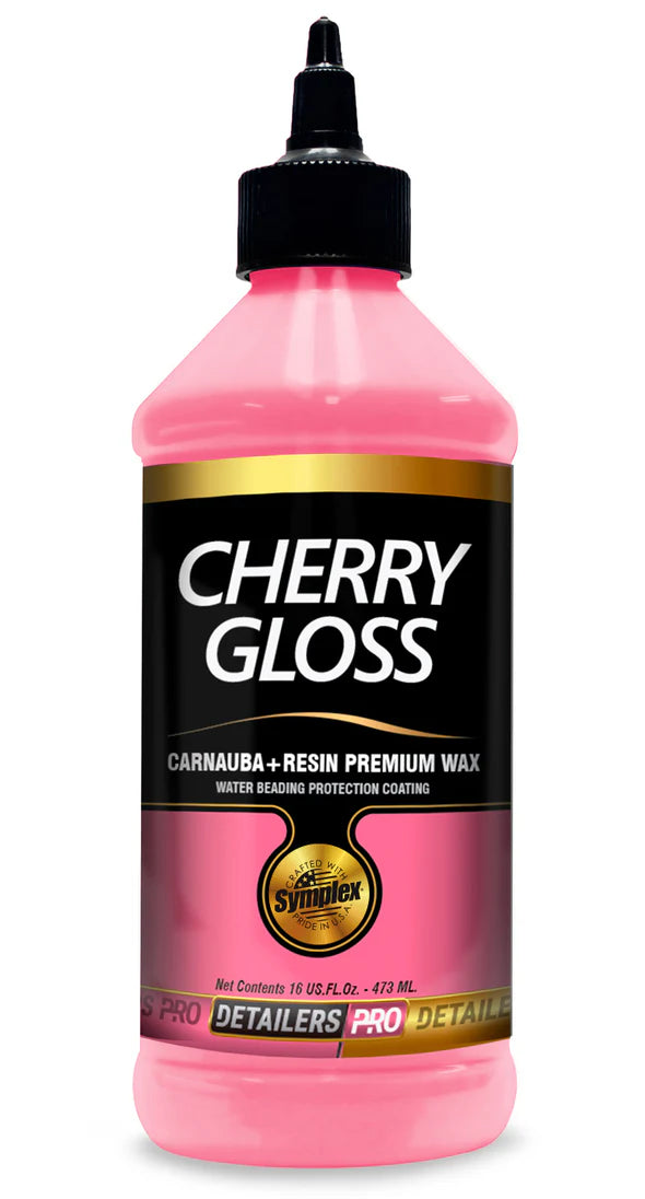Symplex® CHERRY GLOSS PREMIUM WAX, Cera + resina de carnauba T1 pura de grado premium. Fácil de aplicar y remover. No deja residuos blancos en las molduras negras. Ideal para colores oscuros. Deja un brillo profundo con carnauba y un sellado duradero y
