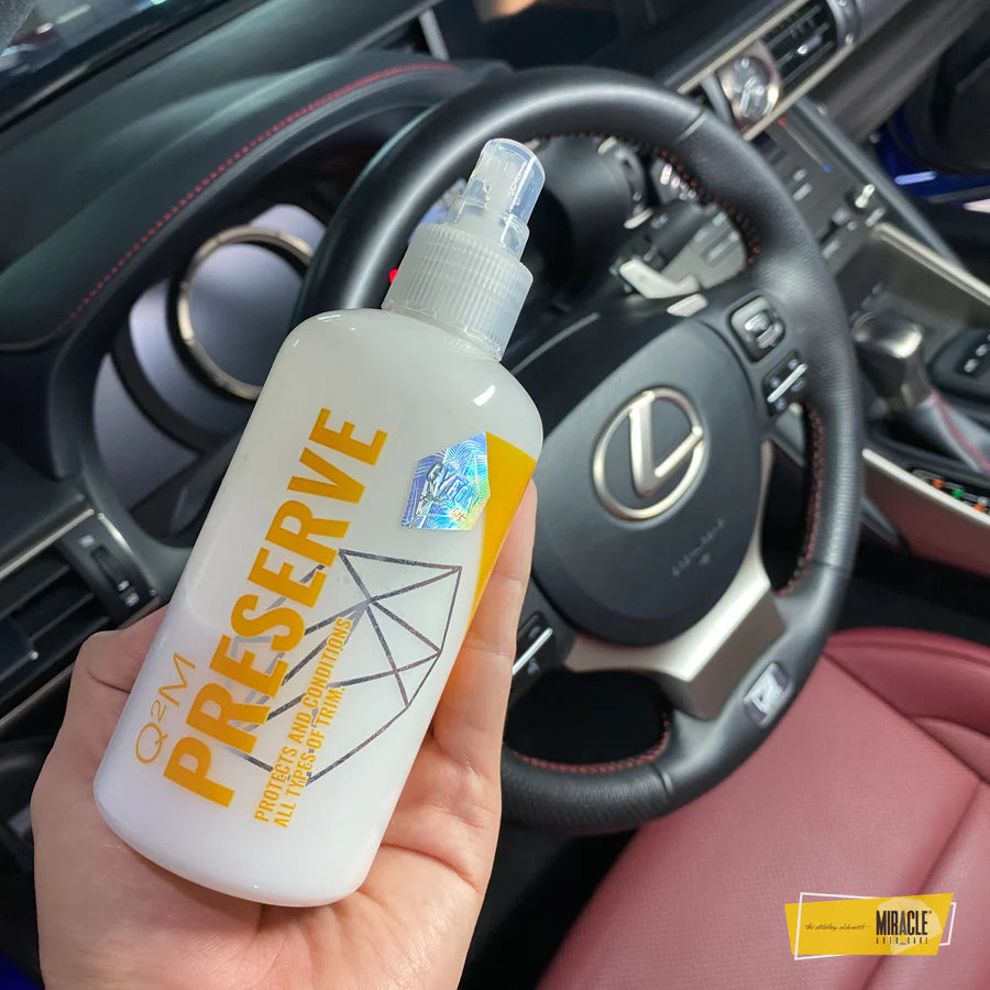 Matte es el acabado más deseado para todas las superficies interiores y Q²M Preserve ofrece un acabado neutro, mate y de aspecto factible a todas las partes interiores de los acabados. Q²M Preserve crea una capa invisible que no afecta el aspecto ni la sensación ni siquiera del recubrimiento de vinilo más suave de ninguna manera. Simplemente recubre la superficie para asegurar su buena apariencia sigue siendo el mismo que el día que lo compró.