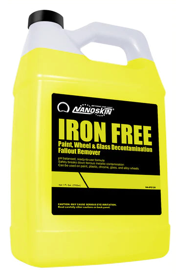 NANOSKIN IRON FREE es un limpiador de pintura y llantas/removedor de lluvia radiactiva sin ácidos y con pH equilibrado. SIN HIERRO descompone de forma segura la contaminación metálica ferrosa causada por los frenos de automóviles, los viajes en tren y la construcción. Descontamina la pintura delicada, el plástico, el cromo, el vidrio y las llantas de aleación. IRON FREE se rocía sobre verde fluorescente y se vuelve rojizo al reaccionar con las partículas de hierro, lo que facilita su eliminación. La fórmula espesa y de alta espuma SIN HIERRO se adhiere a las superficies verticales. Perfectamente seguro para usar en todo tipo de ruedas cuando no se usa bajo el sol directo o en una rueda caliente.
