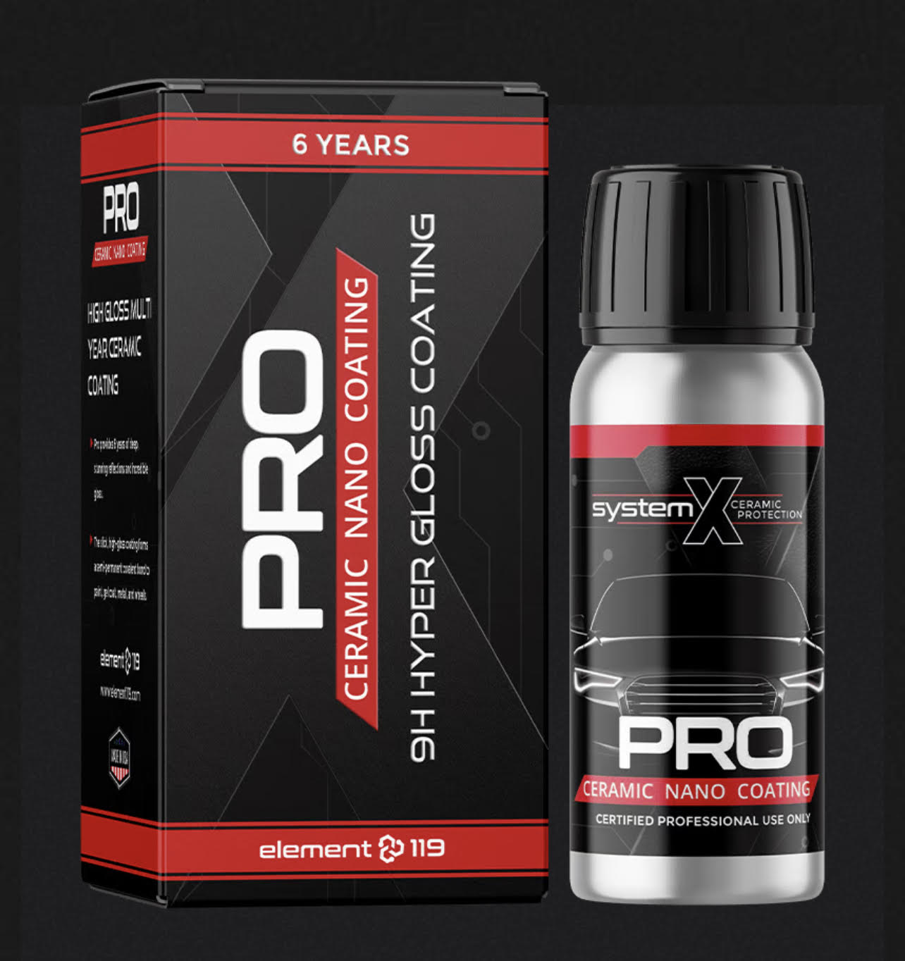 System X Pro™ es un recubrimiento cerámico ultra hidrofóbico para pintura automotriz. Pro™ es una cerámica autolimpiante 9H semipermanente de alto brillo.