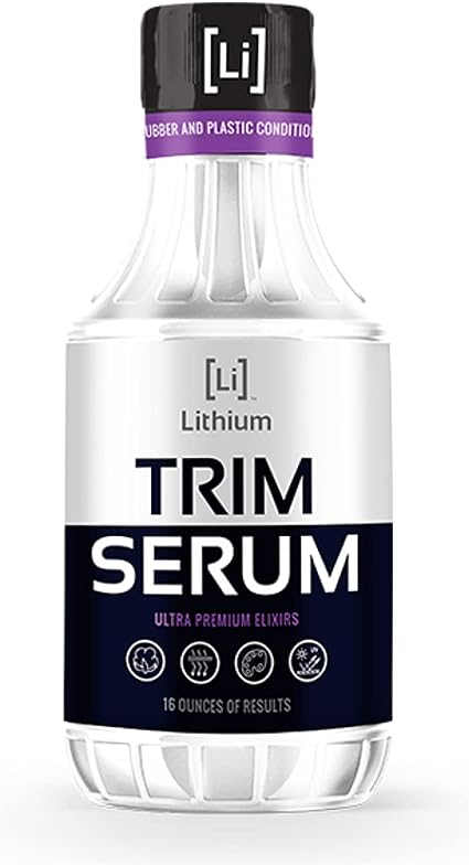 Trim Serum de Lithium Auto Elixirs, restaurador de plástico, restaura incluso el plástico más dañado, goma y vinilo, dura meses y penetra en los poros de plástico restaurando el color 453.5 g.